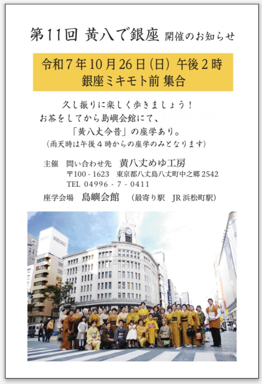 2025年10月26日(日)東京銀座四丁目ミキモト本店前で黄八丈めゆ工房主催『黄八で銀座』が開催されます。
