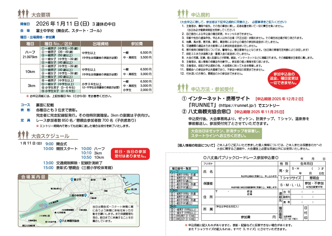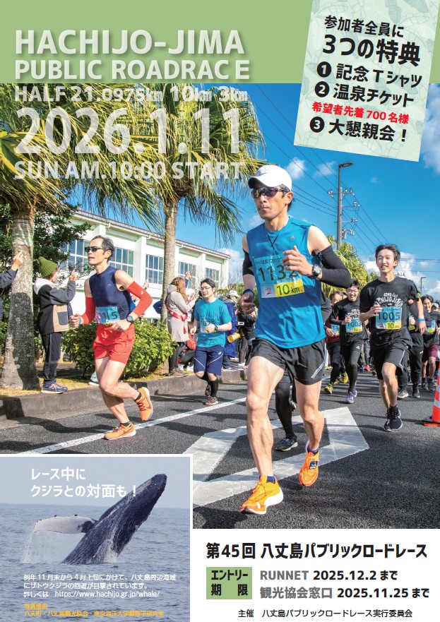 【第45回八丈島パブリックロードレース】今年も10月1日(水)よりマラソン大会への参加エントリー受付が開始となりました!!