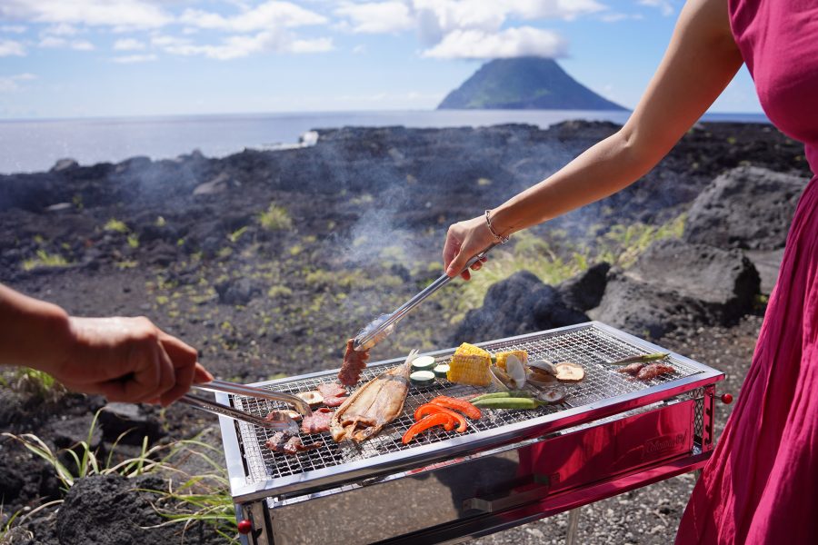 青い空、白い雲、澄んだ海、亜熱帯の植物、吹き抜ける潮風…そんな八丈島の大自然の中でする開放感たっぷりのバーベキューBBQ。そんな島BBQを気軽に楽しみたい!という方のために八丈島観光協会ではBBQ器材セットのレンタルをご用意しました。